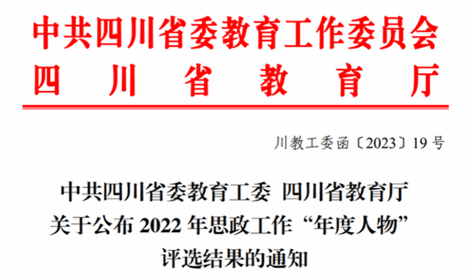 The selection of “Man of the Year” for ideological and political education work aims to enable colleges and universities to fully study, publicize, and implement the spirit of the 20th National Congress of the Communist Party of China and the spirit of the the 2nd Plenary Session of the 12th CPC Sichuan Provincial Committee. Colleges and universities shall continue to learn and implement General Secretary Xi Jinping’s important exposition on education, and strengthen their specialization and professionalism of ideological and political education work force. Faculty members should be motivated to keep practicing the mission of “educating talents for the Party and the country”, undertake the fundamental task of cultivating virtuous future generations, innovate ways and methods of educating students, and enhance their role of mentors for students in learning and the manner of dealing with matters and people.