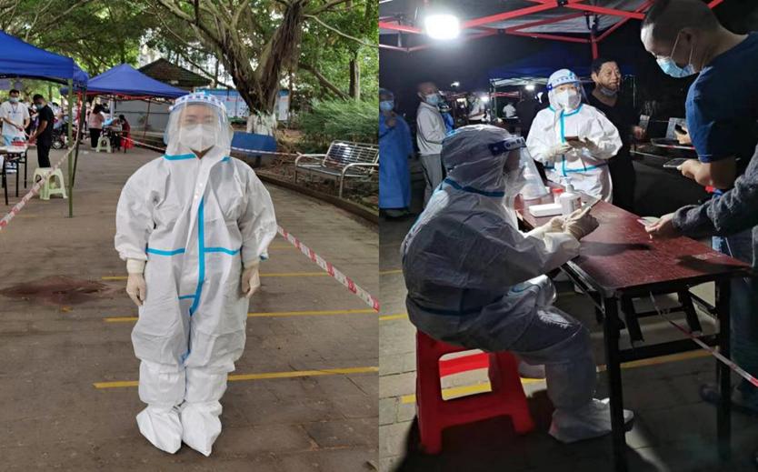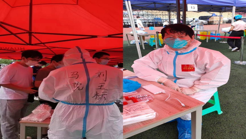 At the school nucleic acid test sites, Party volunteers of faculty members of the School of Marxism Liu Yubiao, Yang Huan, and Men Manzhou, quickly turned into ‘workers wearing white protective suits’ and cooperated with University in nucleic acid testing. In the afternoon of early autumn, it was still hot. Faced with the surging number of test personnel and the urgent testing time, they did not shrink back at all. They stuck to their positions, and patiently and carefully participated in scanning codes for nucleic acid testing, sticking test tube codes, answering questions, and maintaining the order of nucleic acid testing. On September 2, the volunteer service started in the morning and lasted until the cold night. Even when the nucleic acid network system was suspended, Party volunteers of school faculty members wearing protective suits stood by at any time. They fought side by side with the university staff as well as medical staff to build a line of defense against the epidemic with great love.