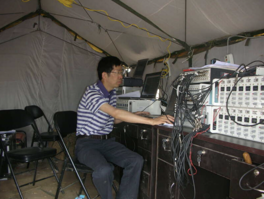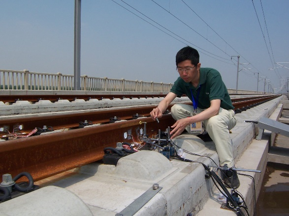 2008年翟婉明在京津城际铁路进行现场测试仪器布置