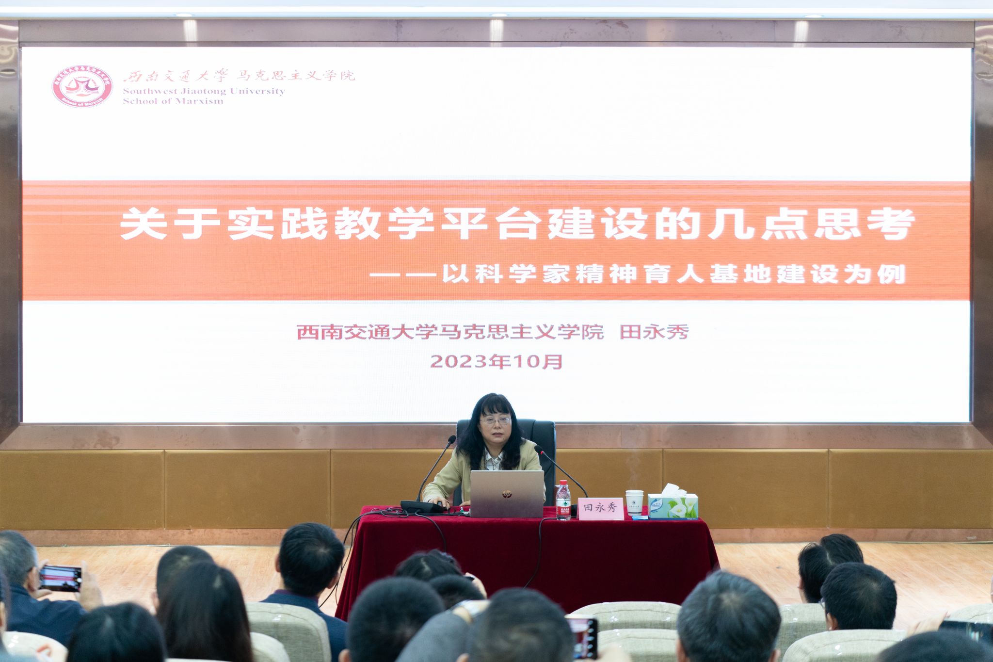 田永秀教授以“关于实践教学平台建设的几点思考”为主旨,向与会成员分享了西南交通大学马克思主义学院克服思政课实践教学难题,创新建设“交通强国科学家精神教育基地”的卓越成效与先进经验。