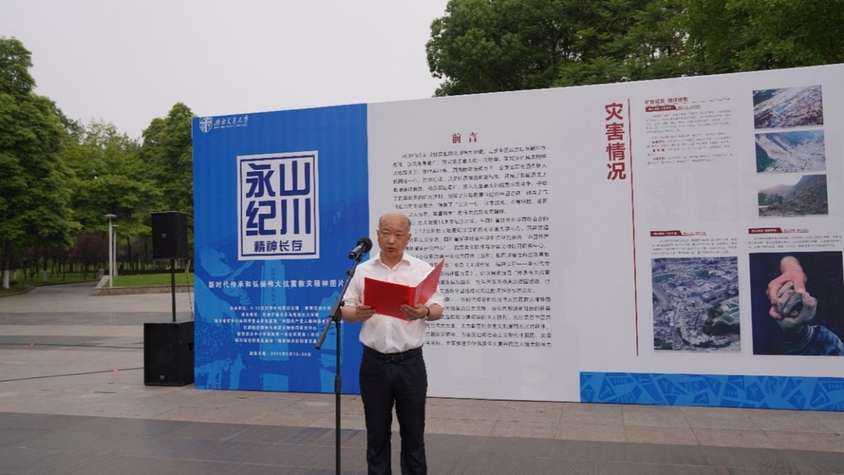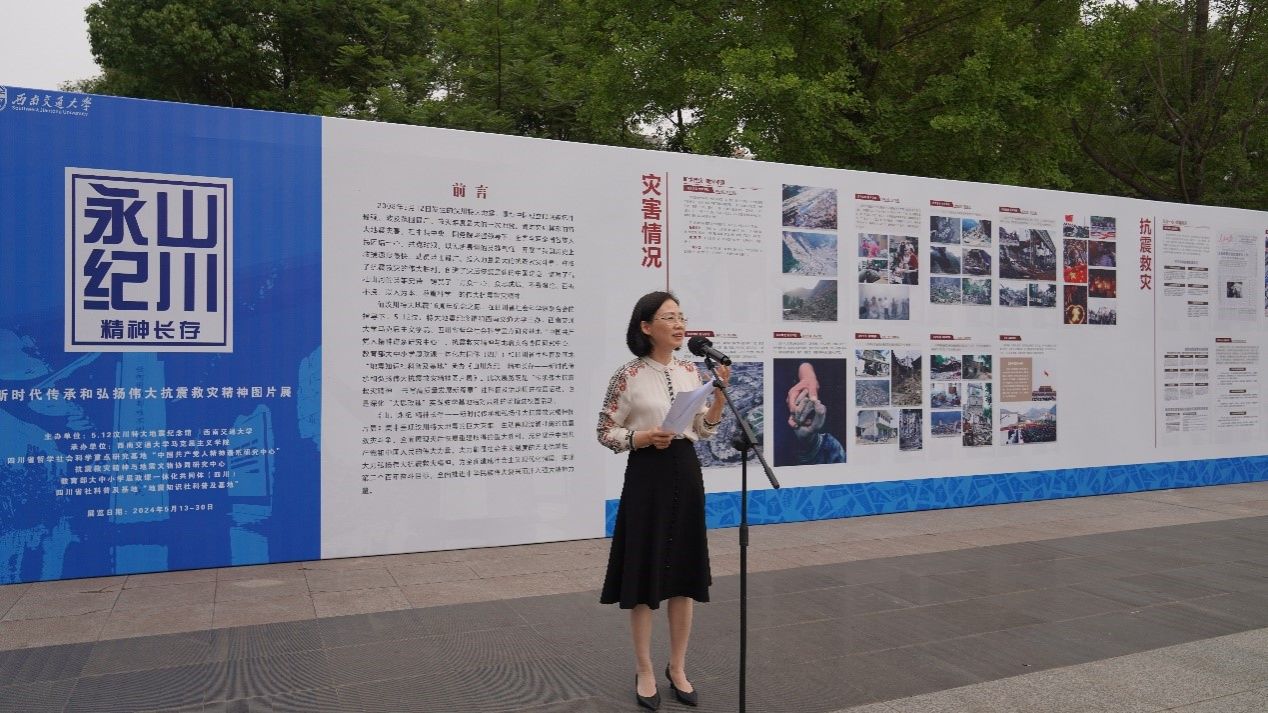 《山川永纪 精神永存——新时代传承和弘扬伟大抗震救灾精神图片展》是在四川省社会科学界联合会的指导下,5·12汶川特大地震纪念馆和西南交通大学主办,西南交通大学马克思主义学院、四川省哲学社会科学重点研究基地“中国共产党人精神谱系研究中心”、抗震救灾精神与地震文物协同研究中心、教育部大中小学思政课一体化共同体(四川)承办的展览。此次展览既是四川省社会科学界“传承伟大抗震救灾精神 书写高质量发展新篇章”科学普及活动周进校园活动,也是深化“大思政课”实践教学基地结对共建的场馆进校园活动。