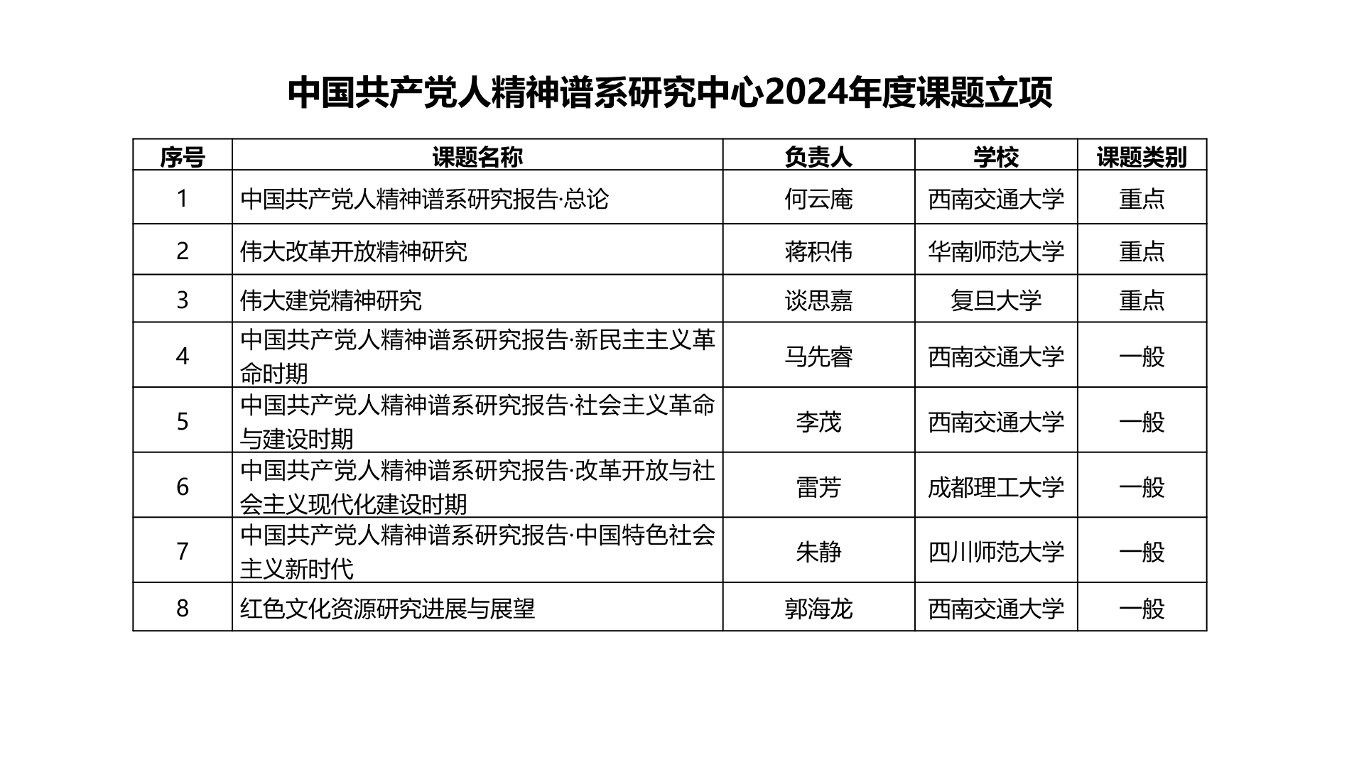 中国共产党人精神谱系研究中心 2024年度课题立项