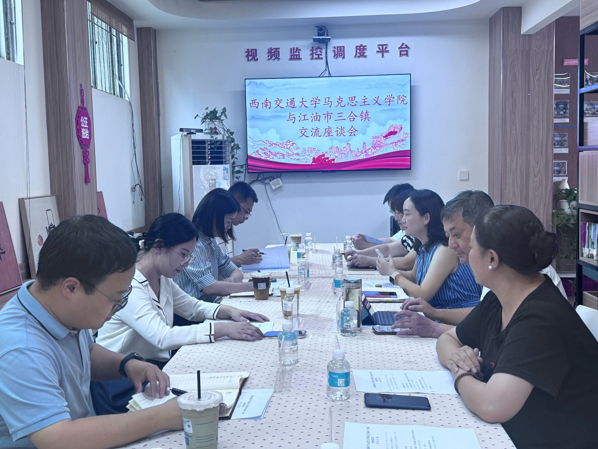 下午,师生一行与江油市三合镇党委举行交流座谈会。会前,三合镇川矿社区党委书记周琼华带领大家参观了该社区,并介绍了党建工作和社区建设成果。