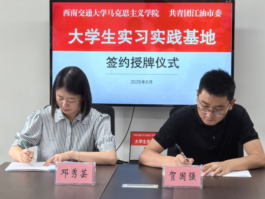 仪式上,贺国强、孟陶然详细介绍了“智汇诗城”人才政策,诚邀交大马院学子走进江油,积极参与“逐梦扬帆计划”“青年实干家”等实践项目,为城市发展贡献青春力量。邓秀芸介绍了西南交通大学及马克思主义学院的历史沿革、师资力量、国家级科研项目承担情况及学生实践成果。她表示,该基地的建立为学院学生提供了宝贵的实践平台,有助于提升实践能力、开拓视野,推动高校人才培养精准对接地方需求,通过资源共享、优势互补,实现校地互利共赢。