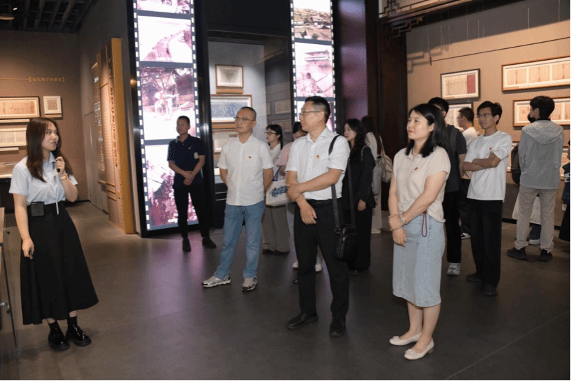 活动伊始,全体人员参观了《风云千重锦官城——成都市档案馆国家重点档案典藏展》。在档案馆工作人员的讲解下,党员们驻足凝视一件件珍贵档案文献,深入了解成都自古代至近现代的城市发展历程与文化积淀。其中,与廉政建设相关的历史档案资料吸引了大家的目光,这些泛黄的文件、手稿生动展现了不同历史时期党政机关对纪律作风建设的重视,为本次主题教育提供了鲜活的历史教材。