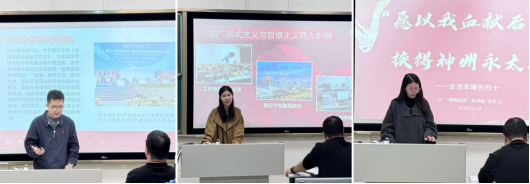 备课会伊始,宣讲团团长、2024级博士生刘瑞介绍了本学期宣讲团的主要工作、组织架构与内部规章。随后,会议进入首项议程“交流‘找茬’,共谋进步”。在本环节中,2024级博士生徐栋、2024级硕士生冯心奕兰和李莎三位成员,分别围绕《全球安全倡议与中国特色大国外交》《以优良作风锤炼校风学风新风貌——中央八项规定精神对校风学风建设的启示》《“愿以我血献后土,换得神州永太平”——从车耀先烈士到伟大抗战精神的传承与弘扬》选题进行试讲汇报。其他成员依次对试讲内容进行评议,并提出具体改进建议。三位主讲人表示,此次试讲与点评使他们深受启发,在选题定位、理论深度、PPT设计及宣讲技巧等方面均有了更清晰的认识和更深的理解。