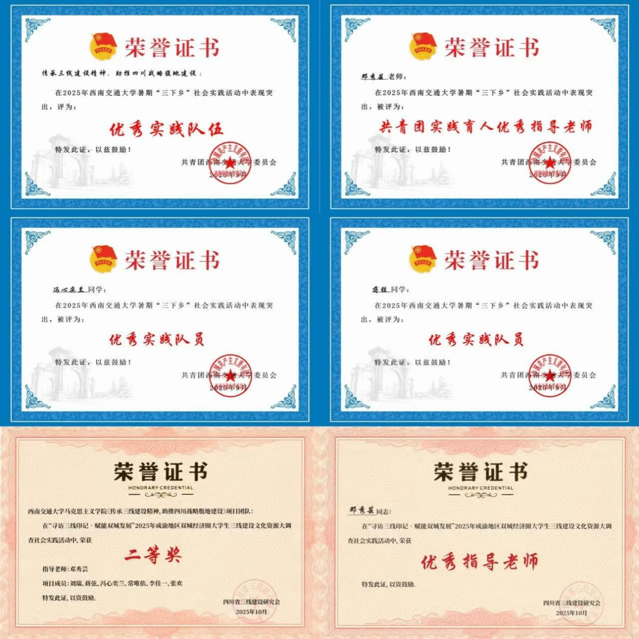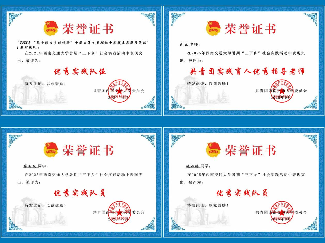 此次实践活动不仅是一次深入基层的调研,更是一堂生动的“大思政课”。充分展现了新时代青年传承红色基因、服务国家战略的担当。未来将继续挖掘三线精神的时代价值,探索其创新性传承路径,为助推四川战略腹地建设贡献交大青年的智慧与力量。凭借上述扎实的工作与显著的成果,该实践队最终荣获“校级优秀实践队”称号,并获评2025年成渝地区双城经济圈大学生三线建设文化资源大调查社会实践活动二等奖。