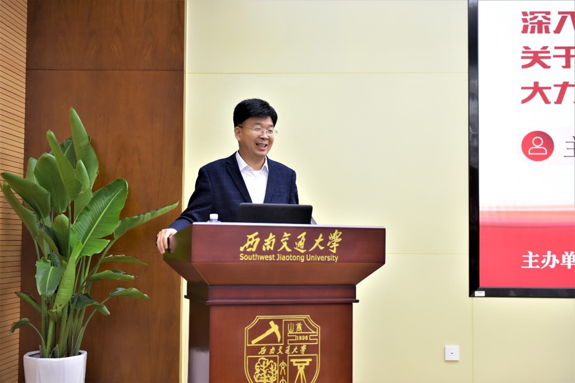 为深入学习贯彻习近平总书记关于思政课建设的重要指示精神,进一步推动思想政治理论课教师队伍建设,本科生院与马克思主义学院联合启动思想政治理论课教师专题研修。10月23日下午,研修首场活动在犀浦校区举行。四川省学术和技术带头人、四川大学马克思主义学院纪志耿教授作专题报告,本科生院常务副院长富海鹰、马克思主义学院党委书记廖军、院长田永秀及全体思政课教师参加活动。活动由科生院副院长兼教师教学发展中心主任李相强主持。
