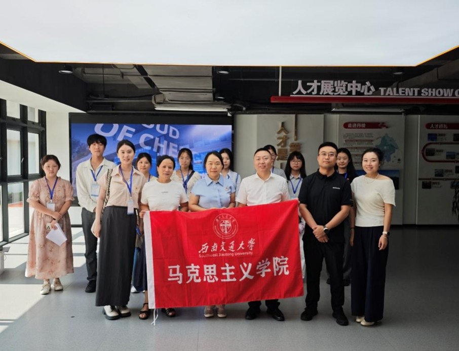 王菁副院长对学院的学科建设、科研平台和人才培养体系进行了系统介绍,重点介绍了人工智能与社会意识实验室、中国共产党人精神谱系研究中心、交通强国科学家精神教育基地等特色科研平台。她表示,马克思主义学院始终坚持服务国家战略和区域发展双重导向,具备扎实的理论研究能力与人才资源优势,能够为丹棱县在社会治理创新、社区文化培育和干部队伍建设等方面提供持续的学术支持与智力支撑。学院也希望以本次调研为契机,推动双方在课题共建、实地调研、学生实践等方面实现多层次、实质性的产学研融合。