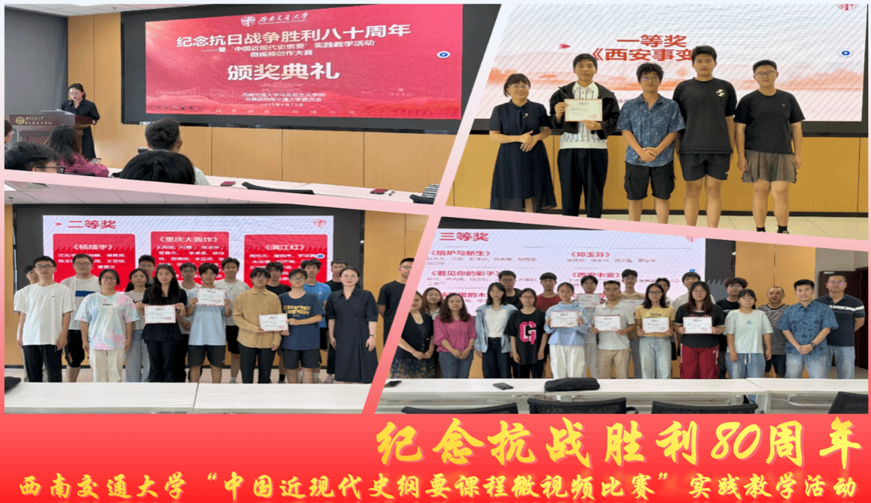 今年是中国人民抗日战争胜利八十周年,为缅怀抗战英烈、传承伟大抗战精神,6月13日,马克思主义学院举行了纪念中国人民抗日战争胜利八十周年暨“中国近现代史纲要”课程实践教学微视频创作大赛颁奖典礼。马克思主义学院田永秀院长、校团委郑源副书记和中国近现代史纲要课程的教师代表出席颁奖仪式。
