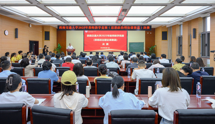 经过初赛和复赛两轮精彩的比拼,2025年5月11日上午,西南交通大学2025年教师教学竞赛(思想政治理论课赛道)决赛在犀浦校区综合楼148会议室正式拉开帷幕。学校党委副书记杨爱华出席大赛,马克思主义学院全体教师和学生代表、学校思政课兼职教师到场观摩学习。大赛组委会由学校教务处、校工会、党委教师工作部、党委宣传部、研究生院、人力资源部等单位相关负责人担任,大赛评委由四川大学党委宣传部常务副部长李栓久、西南财经大学马克思主义学院院长唐晓勇、西南石油大学马克思主义学院院长崔发展、四川师范大学马克思主义学院院长戴剑飞、西南交通大学建筑学院副教授及青教赛国赛一等奖获得者宣湟担任,马克思主义学院研究生赵琳担任学生评委。大赛由马克思主义学院党委书记廖军主持。